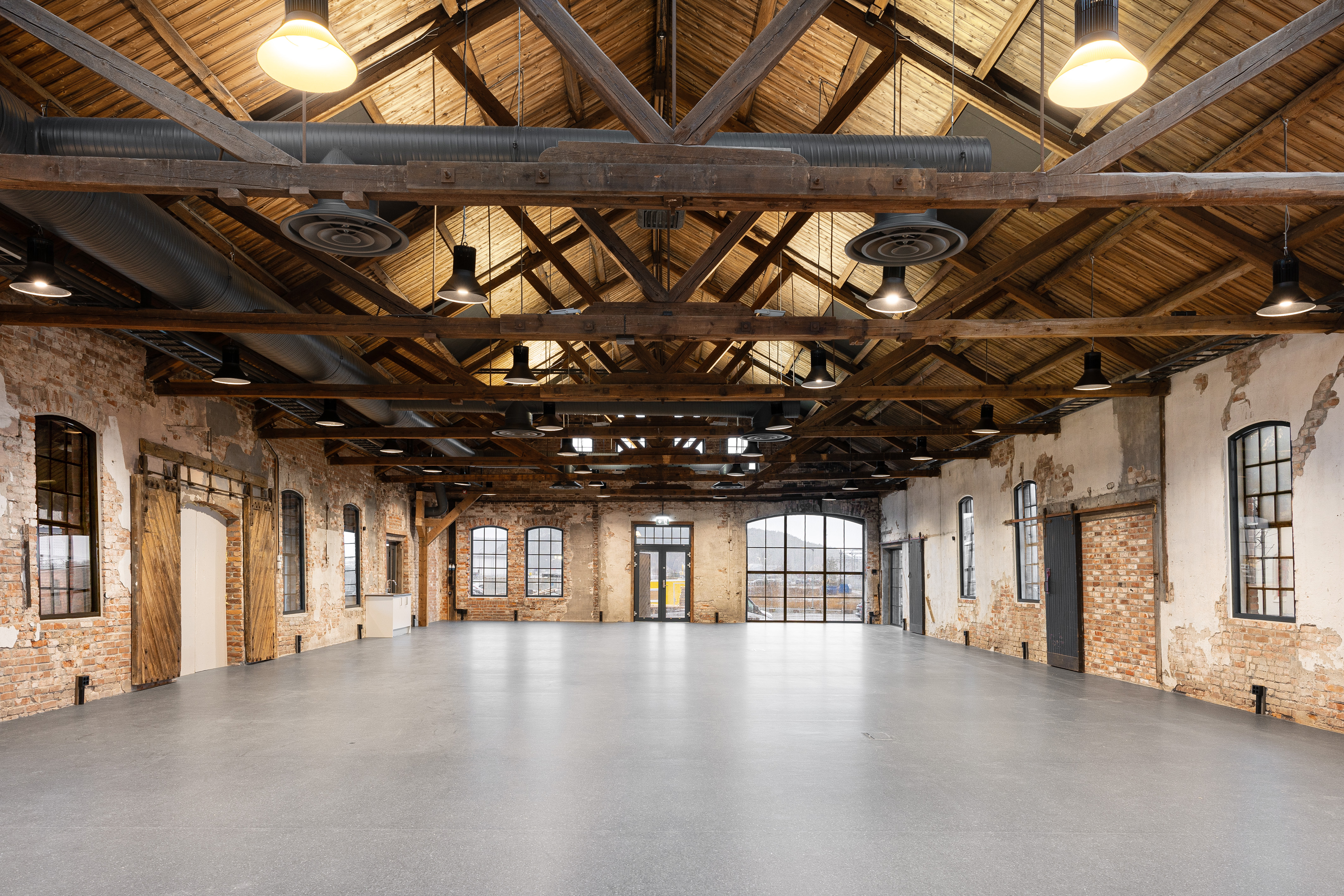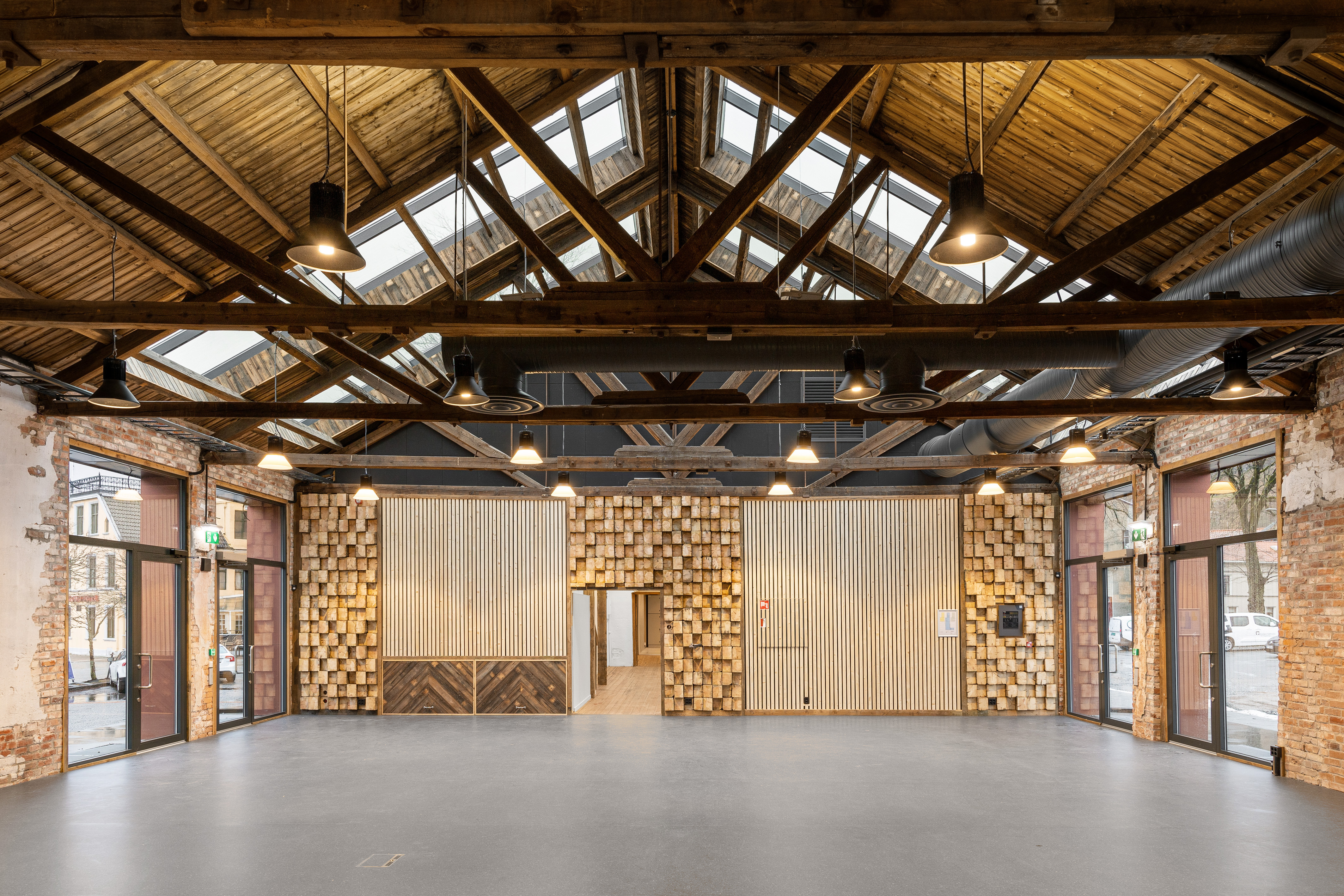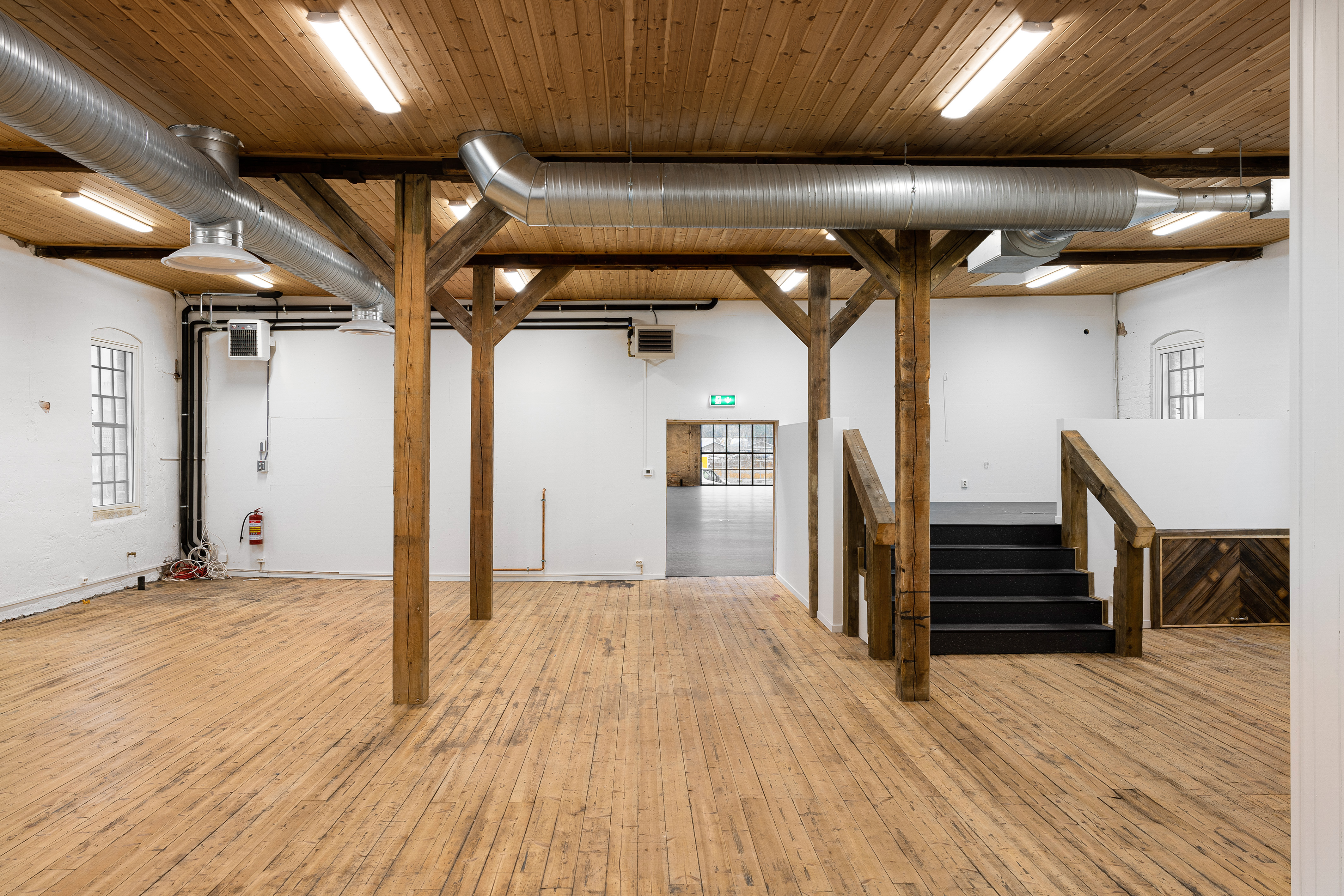 Innvendig er det eksisterende bjelkelag revet og støpt nytt gulv, før de de ulike avdelingene er bygget.