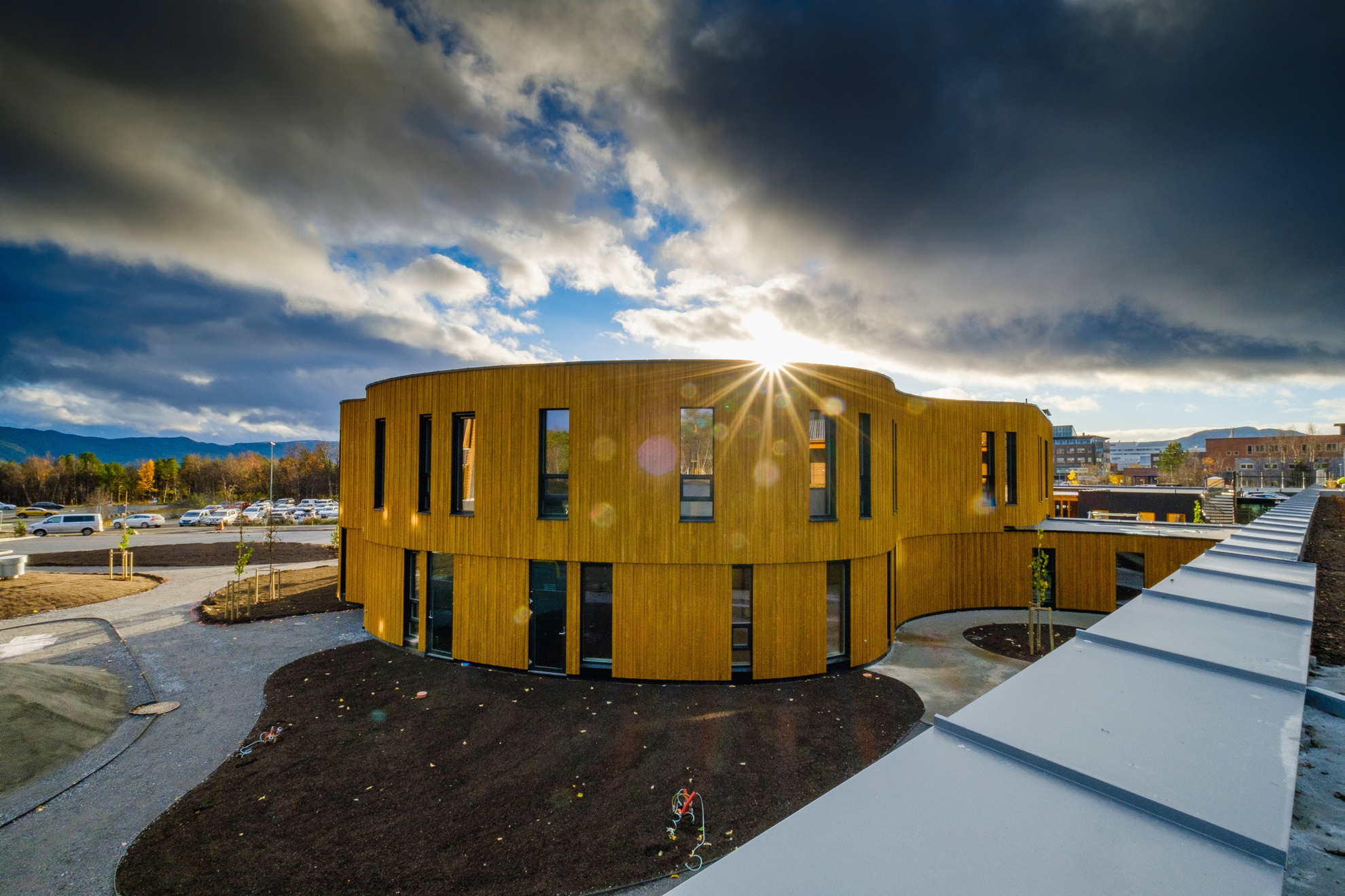«Stort bygg, med gode miljøtiltak gjennom blant annet bruk av massivtre og miljøtiltak som gir lavt CO2-avtrykk. Mange funksjoner i samme bygg som kan gi en fordel i drift. Godt plassert i terrenget. Gode høyder inni bygget, gir åpenhet og godt innemiljø.»
