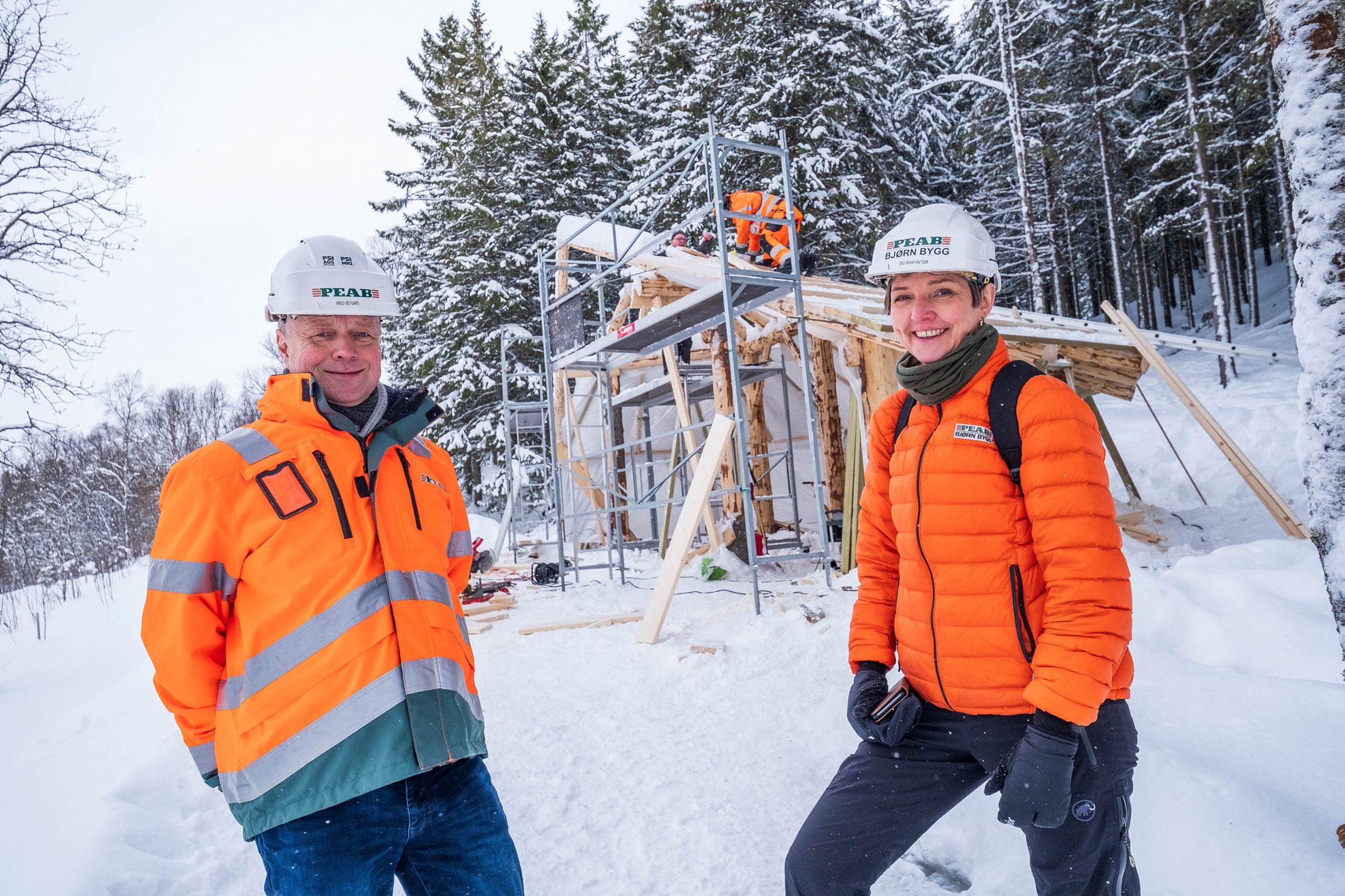 Underveis i prosjektet fikk lærlingene besøk fra Peabs ledelse, som var nysgjerrige på arbeidene. Administrerende direktør Gro Skaar Knutsen i Peab Bjørn Bygg er imponert over gapahukprosjektet og lærlingenes innsats.