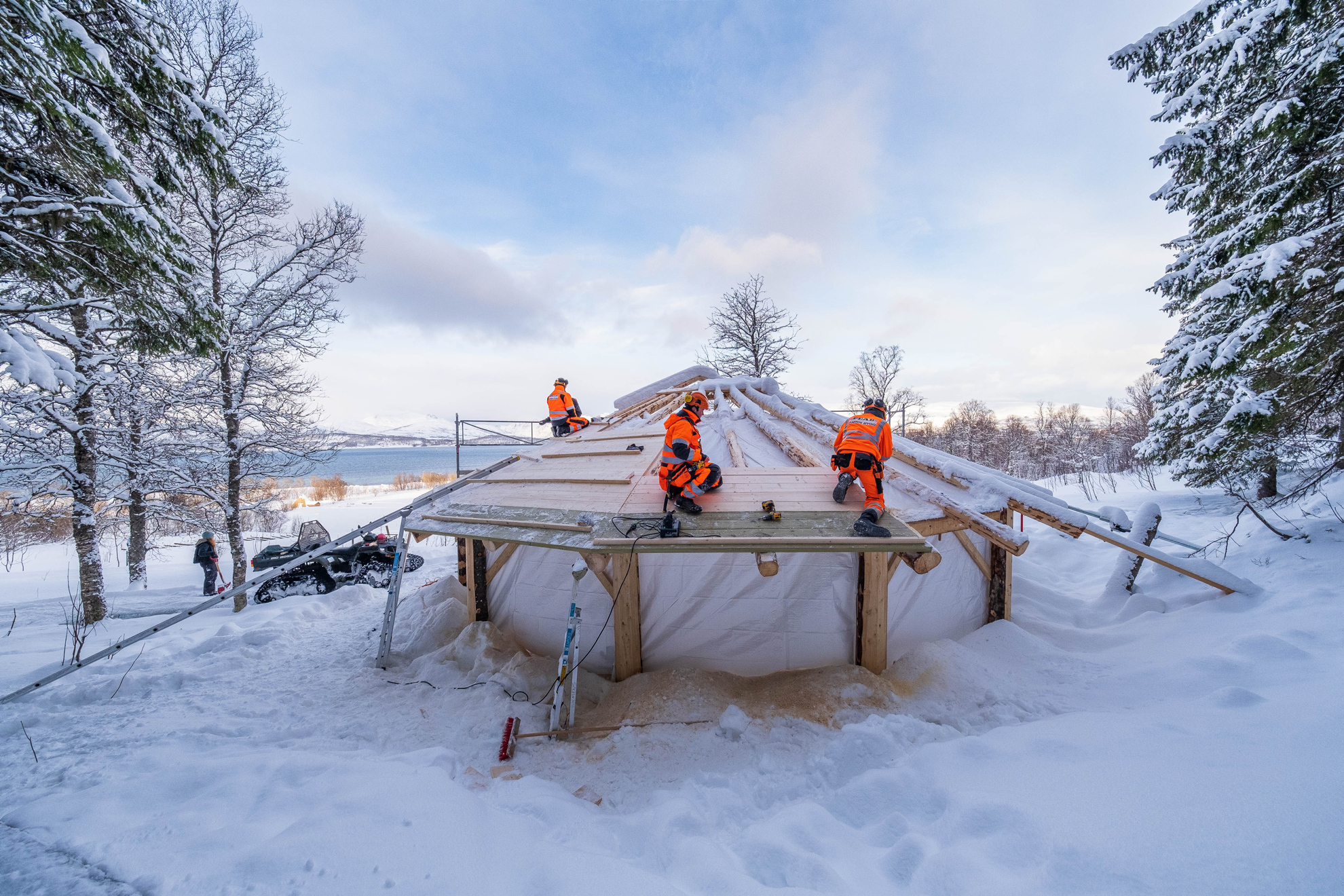 Peab Bjørn Bygg har lånt ut seks av sine tømrerlærlinger for å bidra på Holt læringstuns gapahukprosjekt i Holtemarka i Tromsø. Gapahuken er en del av naturmøteplassen på Holt, som benyttes av barn og voksne i lokalområdet.